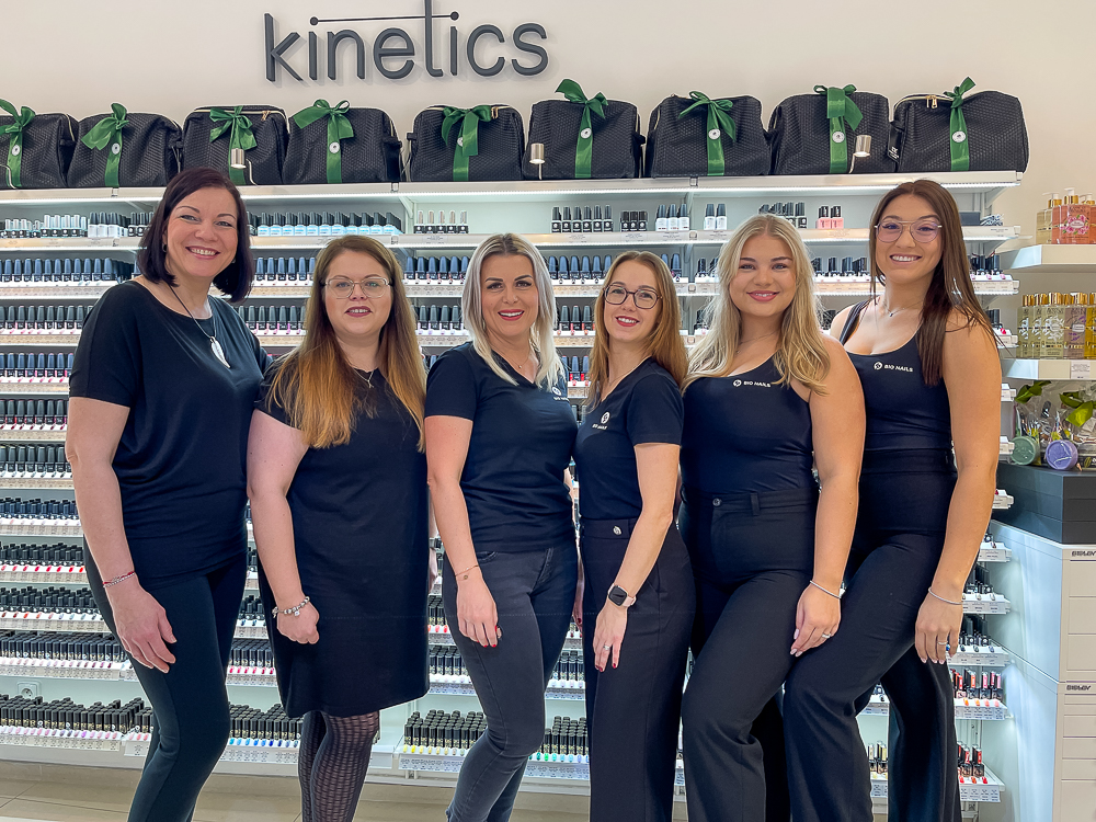 Světově známá špičková značka KINETICS je ucelenou nabídkou skvělé profi nehtové kosmetiky se zaměřením na alergiky, bez obsahu alergizující složky HEMA. Nabízí vše hypoalergenní pro manikérky, pedikérky, ale i domácí využití - gelové a gel lakové produkty, keramické gel laky 2v1, Polyakrygel, nebo luxusní klasické laky na nehty Solargel s gelovým efektem. Dále péči o tělo, ruce i nohy, včetně produktů pro pedikérky. Jedna z mála značek, která nabízí ve stejných odstínech i názvech barevné gel laky i klasické laky na nehty. Všechny barevné produkty jsou vysoce pigmentovány, krytí u laků i gel laků Vás nadchne. Luxusní praktické obaly jsou ozdobou každého salonu. Každé 3 měsíce 8 nových barevností laků i gel laků. Produkty KINETICS jsou nabídkou pro ty nejnáročnější z Vás. Značce KINETICS neodoláte, stejně jako my, proto jsme hrdí, že jsme se stali oficiálním distributorem této značky do České republiky.