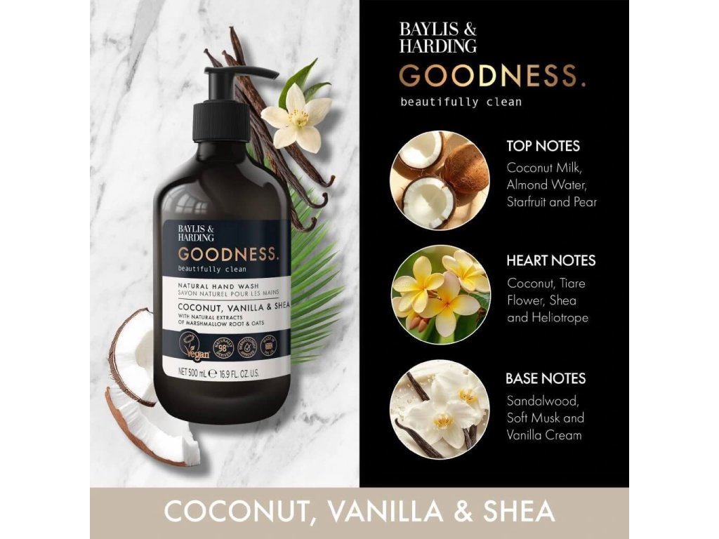 Baylis & Harding Tekuté mýdlo na ruce Goodness - Kokos, Vanilka & Shea, 500 ml