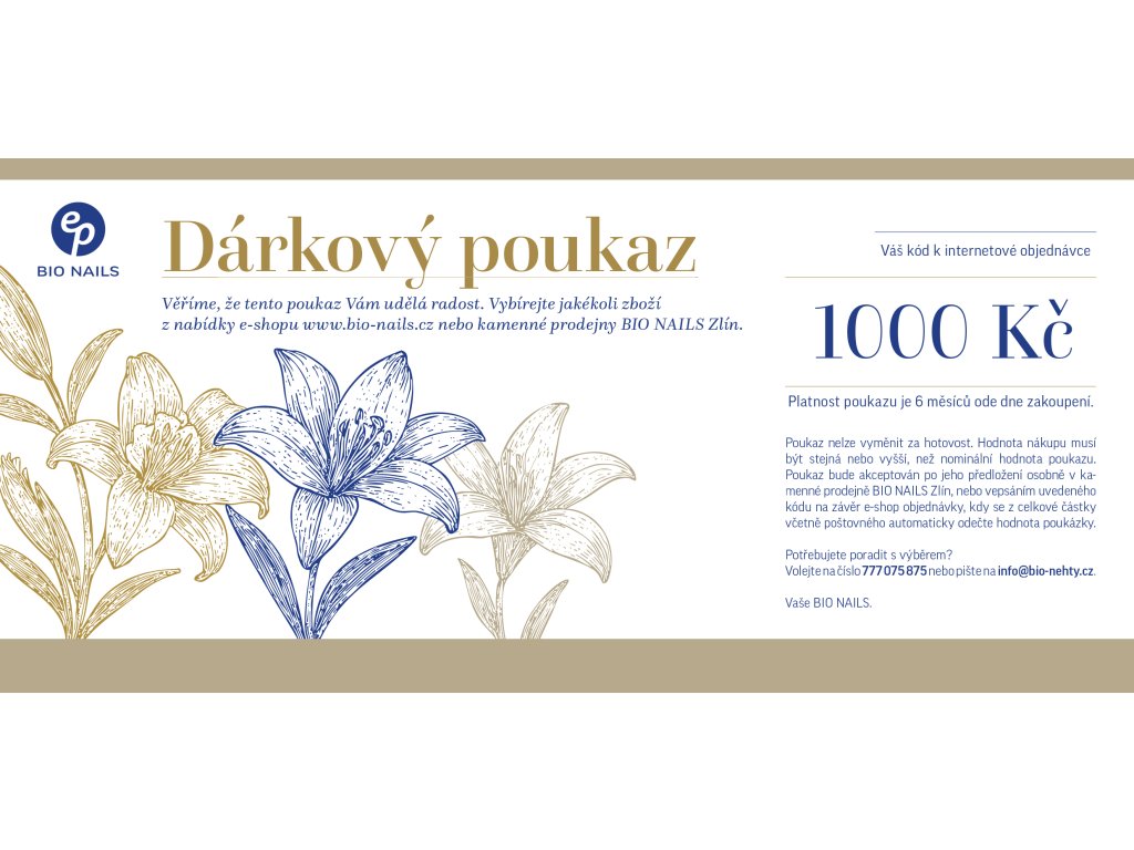 Na základě tohoto poukazu obdržíte jakékoliv zboží z nabídky kamenné prodejny Bio-nails Zlín nebo e-shopu www.bio-nails.cz.