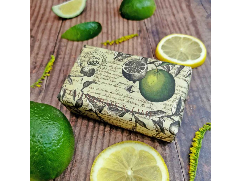 Kew Gardens Lemongrass and Lime Soap je jedním z exkluzivních mýdel v kolekci Kew Gardens. Velkoryse velká 240g kostka mýdla, která je dlouhotrvající a obohacená o hydratační bambucké máslo a rostlinný glycerin pro výživu a péči o pokožku. Papírové obaly jsou potištěny krásnými ilustracemi inspirovanými rostlinami z historických archivů Kew Gardens.