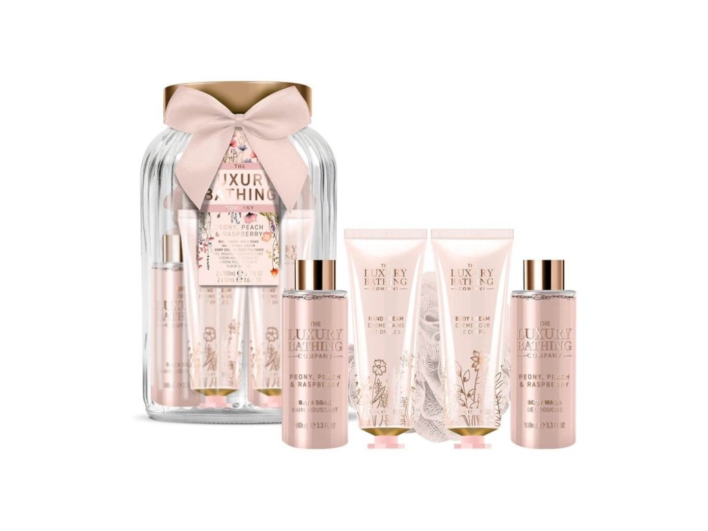 Grace Cole Dárková sada péče o tělo ve skleněné dóze Peony, Peach & Raspberry 5 ks