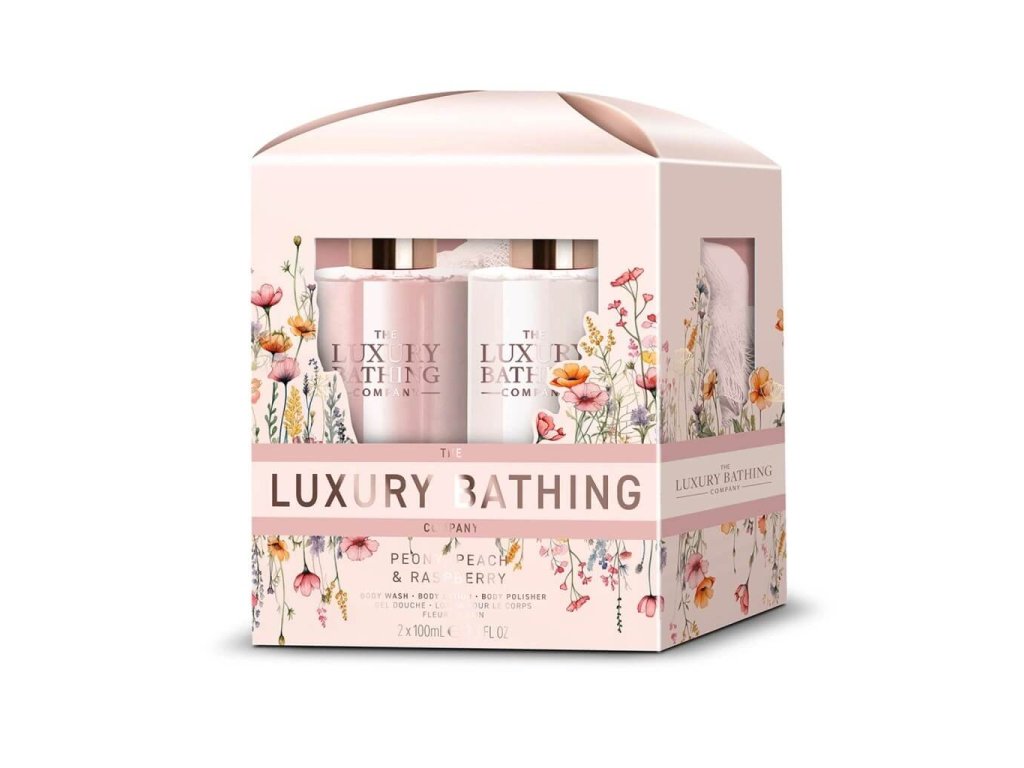 Radostná kolekce Floral Finesse, inspirovaná květinami anglické zahrady, nabízí produkty v něžném, elegantním designu. Jemné kvítky v kombinaci s pudrově růžovou barvou a zlatými detaily zdobí dárková balení vytvářející tuto nadčasovou kolekci. Ovocná vůně mandarinek a malin s květinovými tóny pivoňky a růže, zakončená teplým základem sladkých broskví osloví všechny ženy 40+.