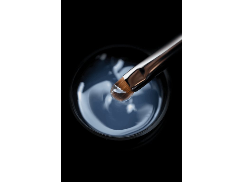- Nyní aplikujeme štětcem na gel první velmi tenkou podkladové vrstvu gelu jednofázový nebo podkladový. Gel spíše vtíráme až vmasírováváme do nehtu ve velmi malém množství a dáváme pozor, aby nestekl ke kůžičce. Přetřeme volný okraj nehtu, tedy nehet tzv. zabalíme do gelu. Vytvrdíme 1 minutu v uv/led lampě (nebo 2 minuty v uv lampě). Nestíráme výpotek.