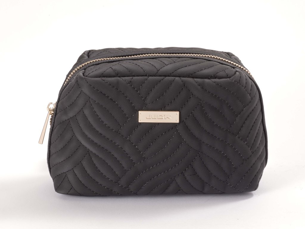 Luxusní kosmetická kabelka, v černé barvě, z velmi kvalitního omyvatelného a recyklovatelného materiálu, s perfektně fungujícím zlatým zipem, který se nezasekává a nekazí. Precizní provedení, které nadchne i tu nejnáročnější ženu. Kabelka je krásná nejen z venku, ale i uvnitř, neboť i podšívka je v nádherném jednobarevném béžovém odstínu. Vnitřní elastické kapsy po obou stranách umožní lepší přehlednost ukládaných drobností. Kosmetické produkty či líčidla v ní tak snadno najdete. Materiál je lehký, což je příjemné, zvlášť při cestování letadlem, kdy se řeší váha obsahu zavazadel. Kvalita této kabelky zaručuje úžasnou několikaletou výdrž. Pro každou ženu je radostí ji mít. Ideální kosmetická taštička pro každodenní využití do kabelky nebo na cestování.