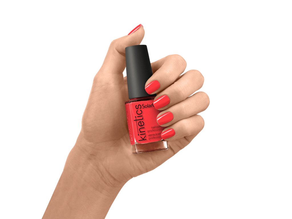 Takto dokonale provedená manikúra s lakováním produkty Kinetics dokáže vydržet bez poškození 6 - 10 dnů, v závislosti na kvalitě konkrétních nehtů a práce, kterou žena vykonává. Kvalitu produktů jistě dokážete ohodnotit již při první aplikaci, která je velmi příjemná i díky velmi praktickým plochým štětečkům a skvělému pogumovanému vršku kónického tvaru, který neprokluzuje a je u všech produktů.