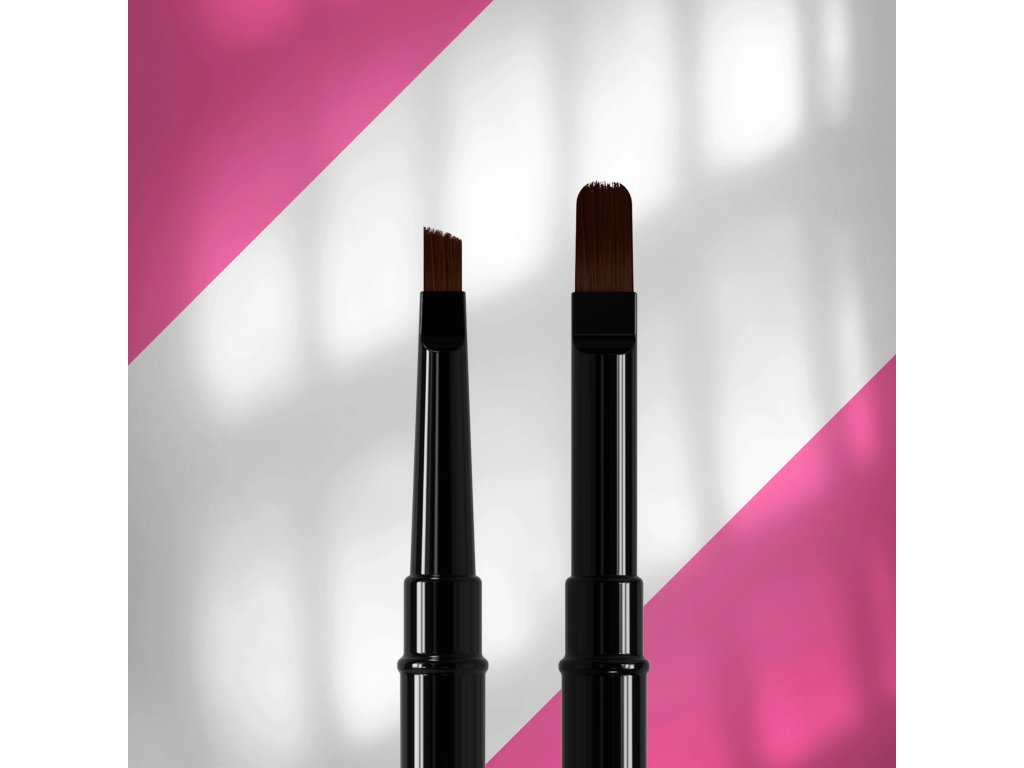 - Oboustranné provedení: jedna strana se zkosenými štětinami šířky 11 mm pro detailní nanášení v okolí kůžičky, druhá strana oválná se štětinami šířky 7 mm pro efektivní pokrytí celé nehtové plochy.