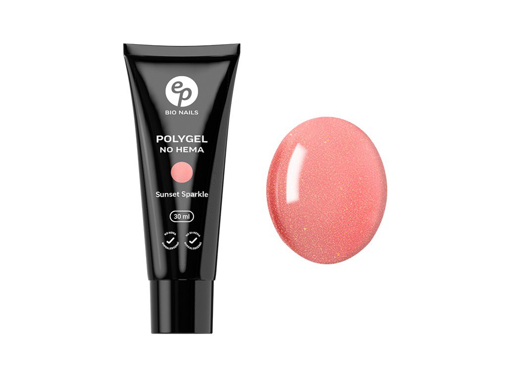 Polygel Sunset Sparkle je vhodný na prodloužení nehtu pomocí duálních forem, nehtových tipů i šablon. Je také vhodný ke zpevnění okrajů nehtů. Jedná se o tuhý materiál, který je kombinací gelu a akrylu dohromady. Díky své pevnosti je vhodný i na velmi manuálně namáhané nehty. Nabízí rychlé vytvrzování, spolehlivou přilnavost a snadné použití, což ocení začátečnice i profesionálky. Hypoalergenní složení bez složek HEMA, Di-HEMA a Bis-HEMA zajišťuje tu nejvyšší šetrnost k citlivým nehtům a alergikům.