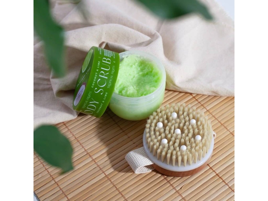 Krouživými pohyby nanášejte pomocí masážního kartáče na vlhkou pokožku. Poté důkladně opláchněte.