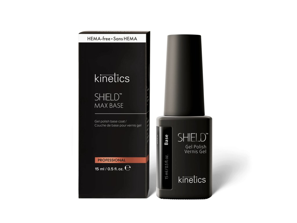 Kinetics Shield Max Base je vysoce přilnavá podkladová báze vyvinutá pro dlouhotrvající gel lakovou manikúru. Je určena zejména pro klientky, u kterých dochází k častému odlupování, zkracování výdrže nebo mechanickému namáhání nehtů.